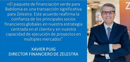 El director financiero de Zelestra, Xavier Puig, afirmó que el financiamiento verde para Babilonia representa “una transacción significativa que reafirma la confianza de los socios financieros globales en nuestra estrategia centrada en el cliente y en nuestra capacidad de ejecución de proyectos en múltiples mercados”.